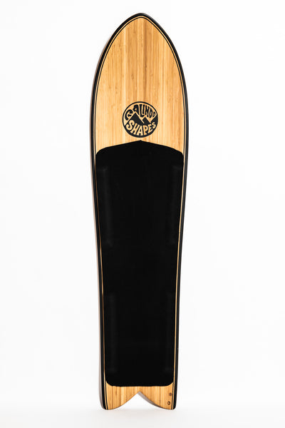 A radically extreme short board concept! Based on maximum surface area for lift, down-the-line glide and float. Unlike my other boards, this one has a continuous (low) rocker from tip to tail, that helps balance the extra width of the board, allows the nose to come up easily when putting more weight on the back foot, and has tons of pop.